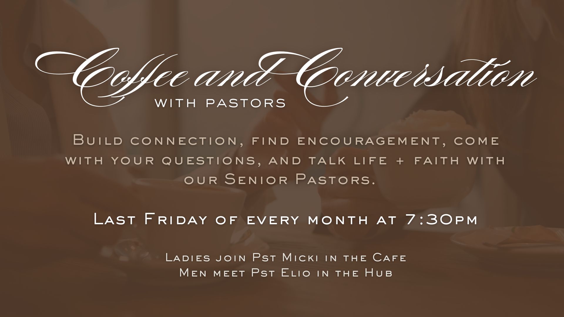 Feb 27 Coffee and Conversation with Pastors Featured 7:30 pm - 9:30 pm NewLife Church 8111 Weston Road, Vaughan Event Details Get Directions